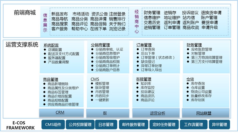 易思博电子分销作为私有电子市场(Private Market)一种解决方案,支持以分销渠道为主要出货方式 的企业实现在线销售。集成了多种行业既有的业务流程,化的商务用户体验。以易思博E-COS为基础平台,利用业界最先进的SOA架构,最大限度支持业务的 扩展性、灵活性和自适应能力。