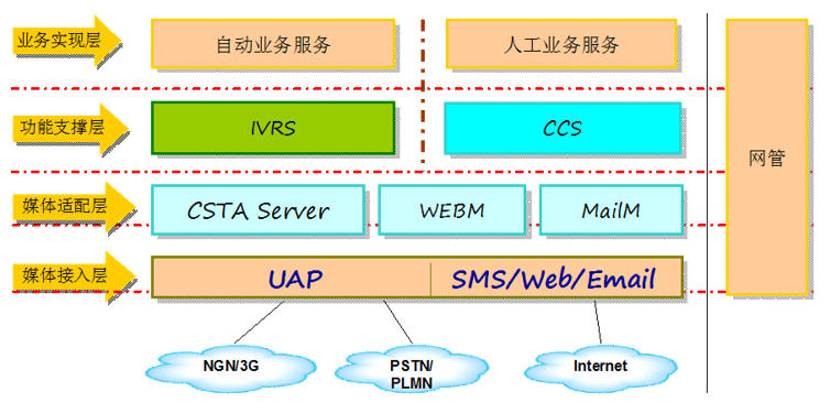 4、强大的CTI功能:多种媒体统一路由、灵活路由策略、高效排队管理、业务流程控制、路由轨迹跟踪、资源配置